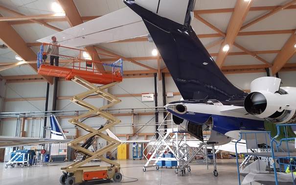 Performing checks also at lofty heights – a Global Express at the AMAC Aerospace hangars in Basel, Switzerland