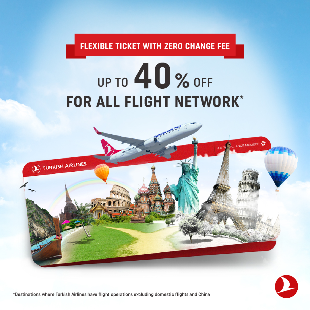 Turkish Airlines is launching a 40 percent discount campaign for its guests who wish to discover the world again in the coming good days. Passengers taking advantage of the exclusive prices will be able to discover the most beautiful cities around the globe with the flexible ticket options at advantageous prices of Turkish Airlines.
