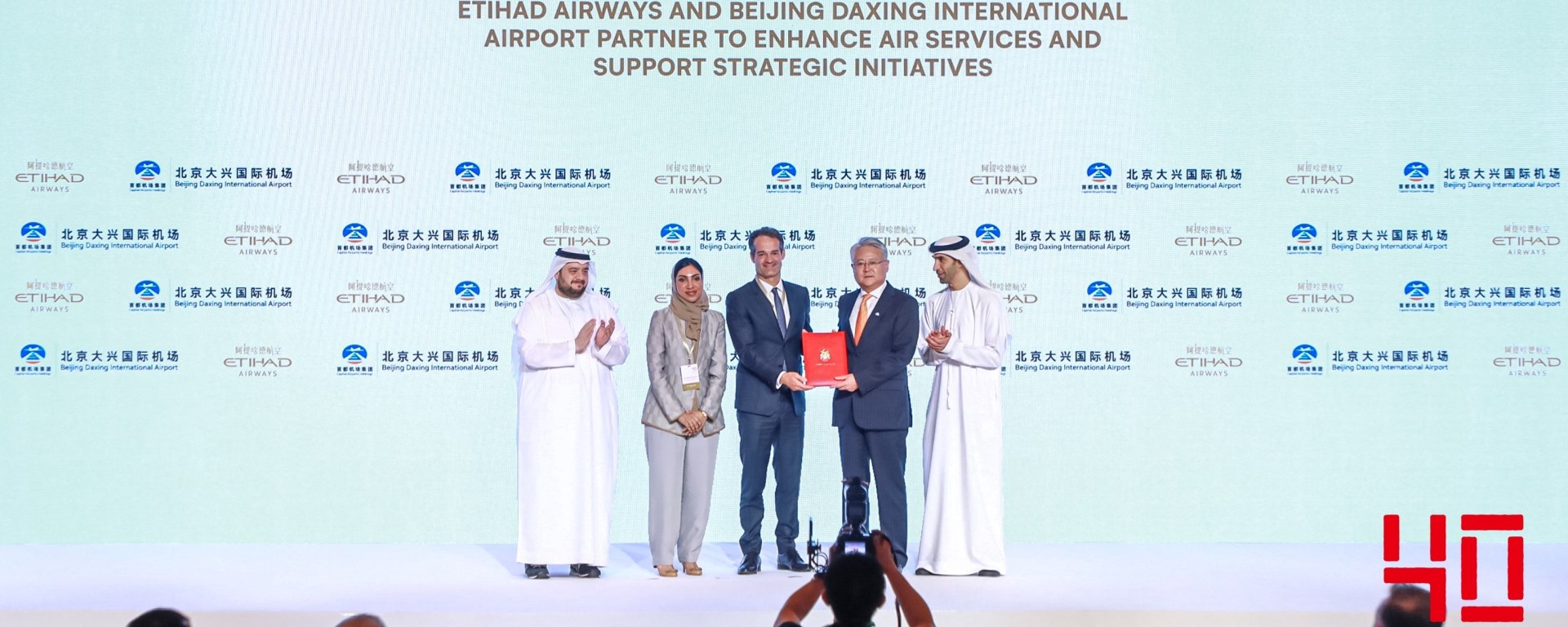 Today, at the UAE-China Business & Investment Forum, Etihad Airways, the national airline of the United Arab Emirates, and Beijing Daxing International Airport of Capital Airport Holding Company, signed a significant Memorandum of Understanding (MoU), aiming to strengthen the strategic cooperation between the two parties. The milestone marks a further deepening of the partnership between Etihad Airways and Beijing Daxing International Airport in the aviation sector, opening a new chapter in aviation cooperation.