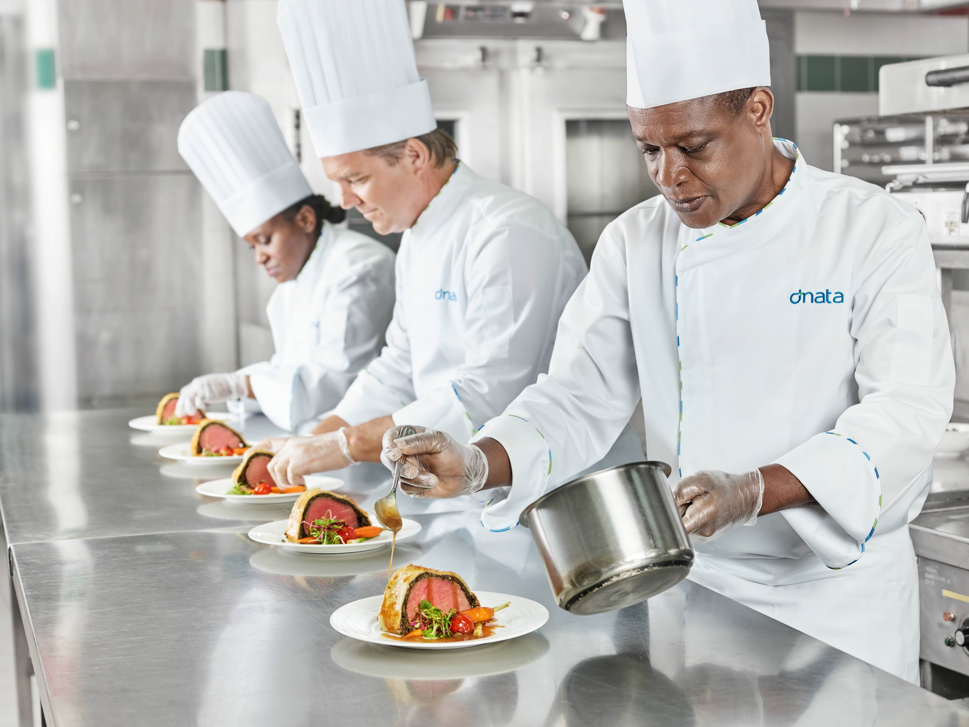 dnata is one of only a few VIP caterers which has separate Halal kitchens and teams within all its facilities. Its chefs receive tailored training from specialist colleagues, to prepare favourite dishes including Indian and Middle Eastern cuisines. This not only ensures that dnata provides the highest quality, tasty meals, but also by keeping preparation and cooking in-house, all food safety standards can be thoroughly controlled. This includes allergen segregation.